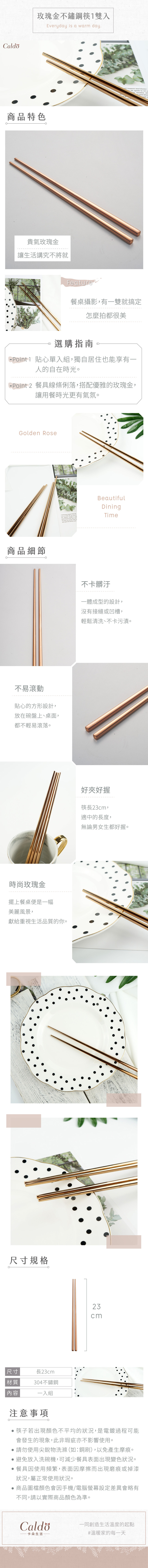 Caldo卡朵生活|貴氣玫瑰金不鏽鋼筷(一雙入)