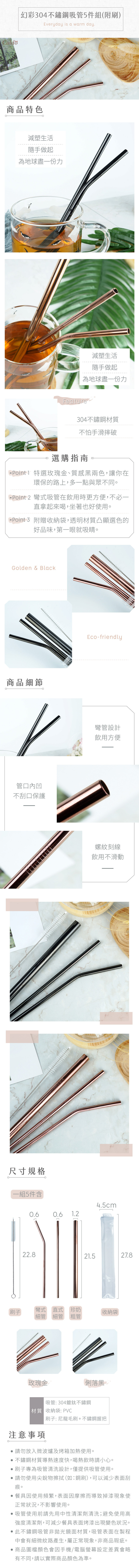 幻彩304不鏽鋼平口吸管5件組(附刷)