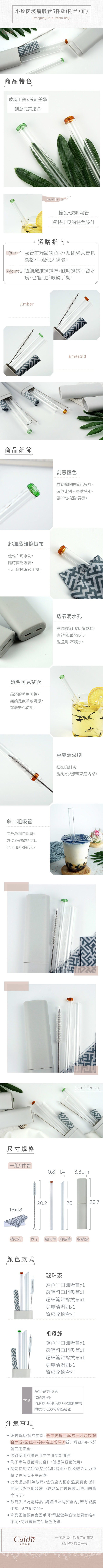 Caldo卡朵生活|小煙囪玻璃吸管5件組(附盒+布)