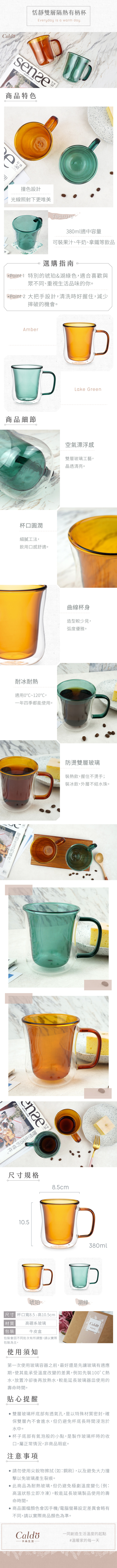 Caldo卡朵生活|恬靜雙層隔熱撞色有柄玻璃杯 380ML
