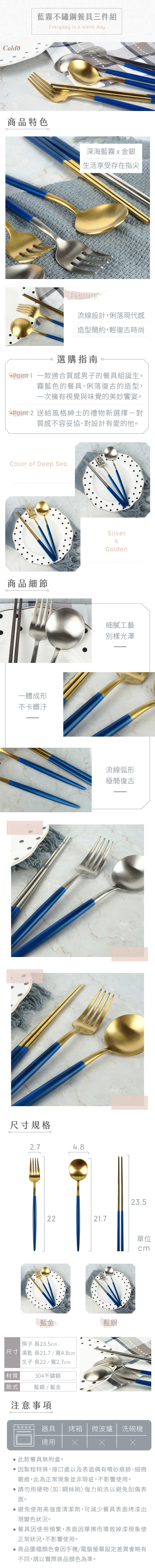 Caldo卡朵生活|深海藍霧不鏽鋼環保餐具3件組