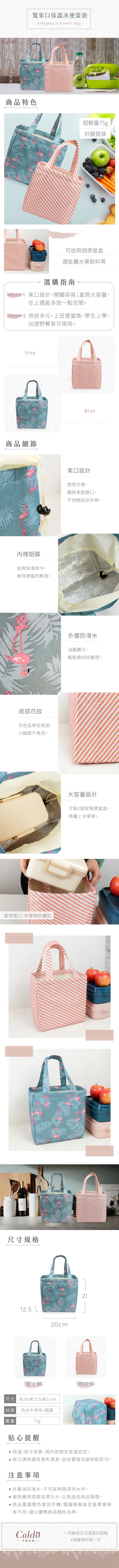 Caldo卡朵生活|寬束口牛津布保溫冰便當提袋